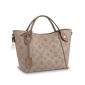 The Hina is two bags in one: gather in the sides on a central snap hook, and the tote transforms into a trendy bucket style. Crafted of perforated calf leather, it is light and comfortable, ideal for everyday wear. The PM model has a detachable strap for cross-body carry.