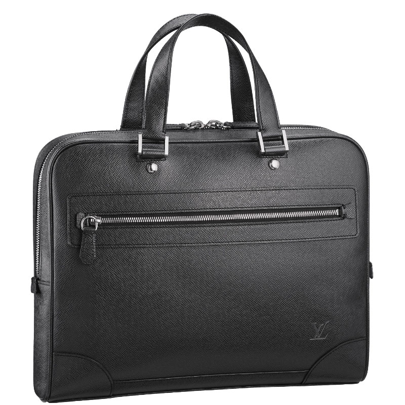- Taiga leather discretely bearing the LV initials, grained leather trimmings and textile lining