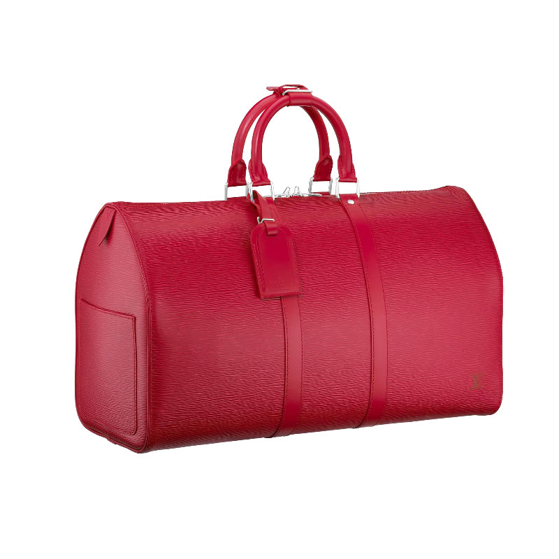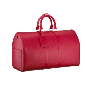 The smallest hand-held keepalll bag in Epi leather offers a spacious interior that closes with a double zipper.