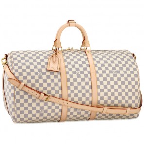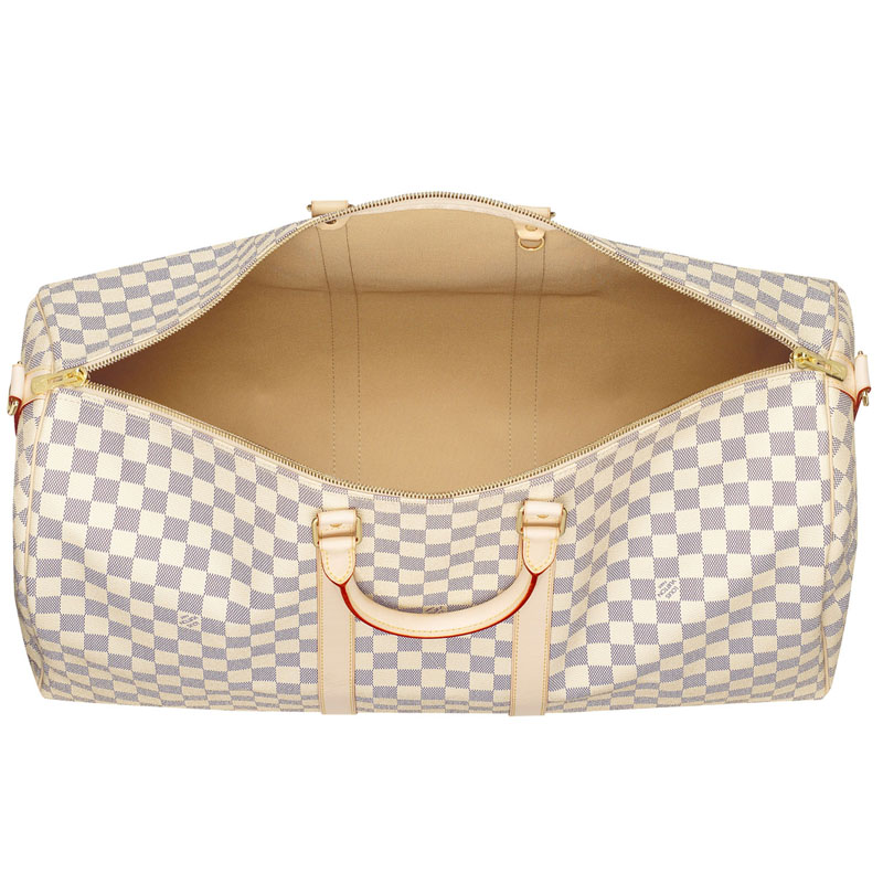 This sizeable Keepall comes with Damier Azur lining and is a tribute to the glamour of the Riviera. The practical and comfortable House classic features a removable shoulder strap.