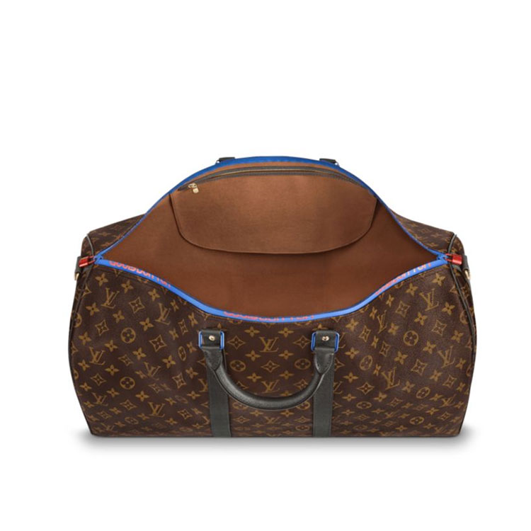 The classic travel bag takes on the technical, sports-inspired feel unveiled by Kim Jones at the 2018 Spring-Summer Show. This Keepall 55B mixes Monogram canvas, Taiga leather and colored metallic pieces for a sporty chic allure.