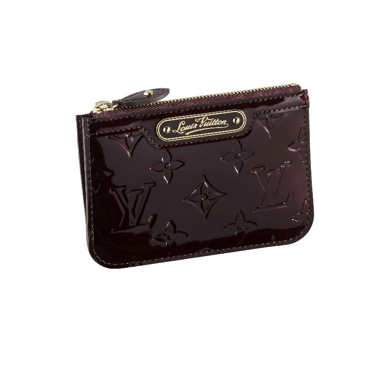 This key purse in Monogram Vernis leather is extremely versatile, with room for keys, change and small papers.