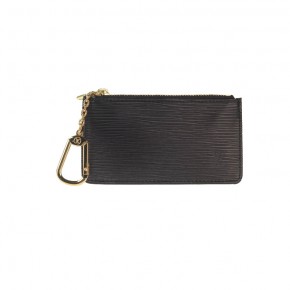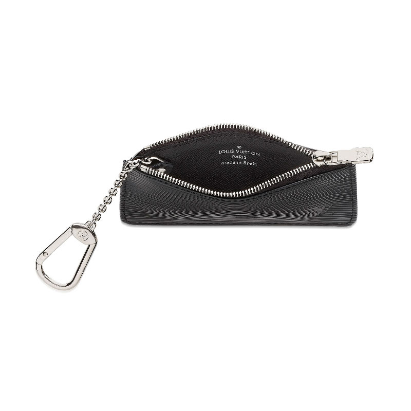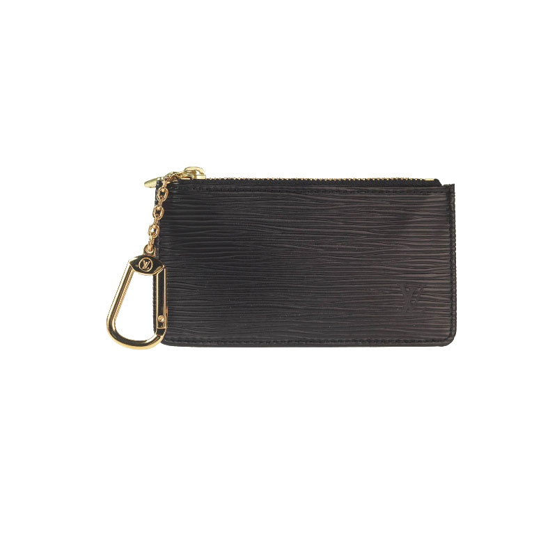 This key pouch in Epi leather holds change and keys. It clips easily onto the D-ring found in most Louis Vuitton handbags.