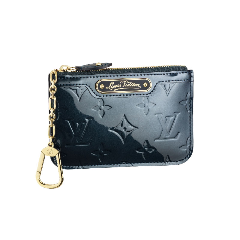 This Key Pouch in Monogram Vernis leather is extremely versatile, with room for keys, change and small papers.
