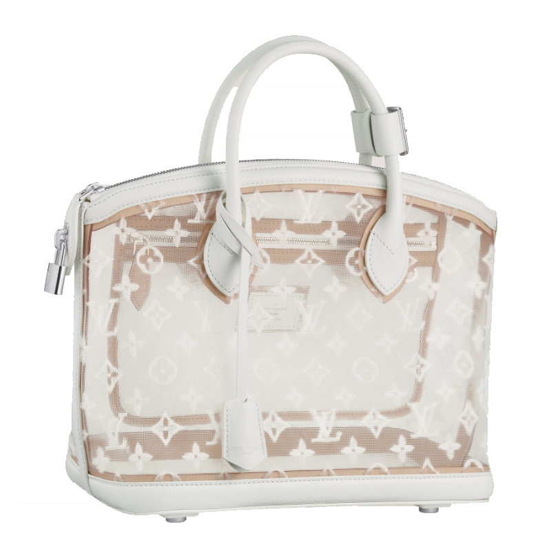 The Lockit in exquisite monogram transparence embodies fresh,feminine charm,adorned with adelicately embroidered monogram pattern,radiant white calfskin leather trimmings enbanceits iconic shape