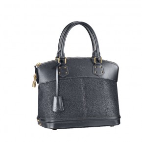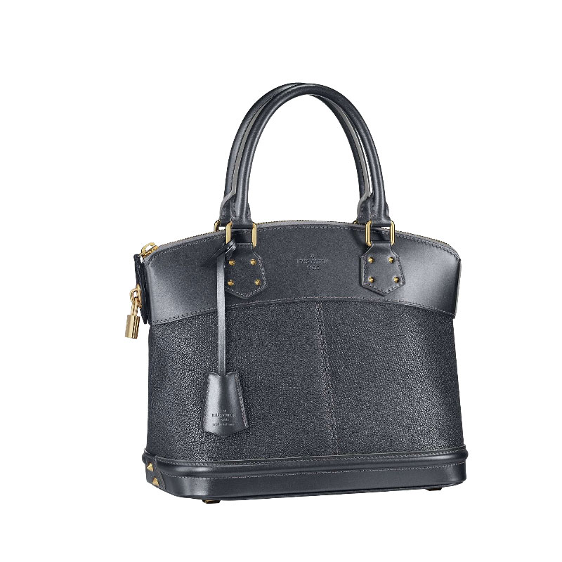 This city bag crafted in luxurious goat leather has sophisticated details reminiscent of Louis Vuitton trunks, detailing such as brass metallic pieces and contrasted stitching. A very elegant and understated hand-carry