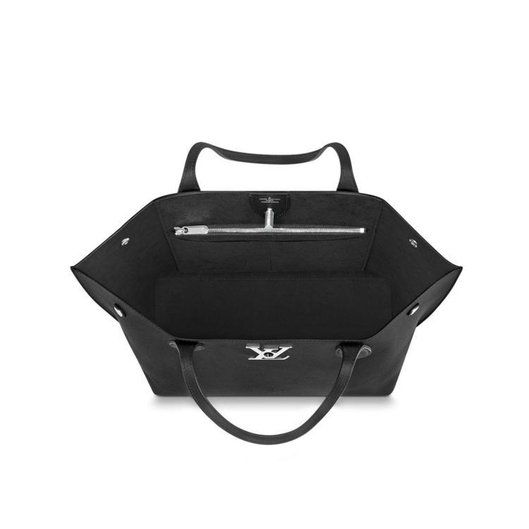 Dedicated to the elegant, active woman, the Lockme Go tote offers both flawless function and uncompromising style. Crafted from soft calfskin with double handles designed for comfortable over-the-shoulder wear, this sleek yet chic model is accented with a silvery metal LV turn lock and two snap buttons to keep belongings secure.
