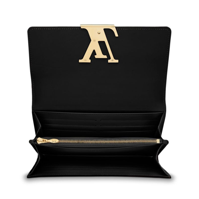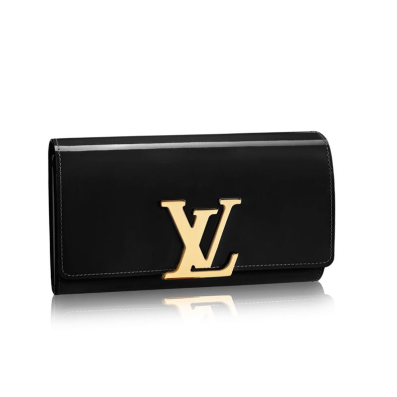 This modern and ultra-feminine long wallet in patent calf leather is instantly recognizable thanks to its iconic LV clasp. A very versatile wallet that can be worn as a clutch.