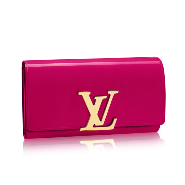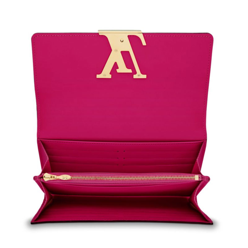 This modern and ultra-feminine long wallet in patent calf leather is instantly recognizable thanks to its iconic LV clasp. A very versatile wallet that can be worn as a clutch.