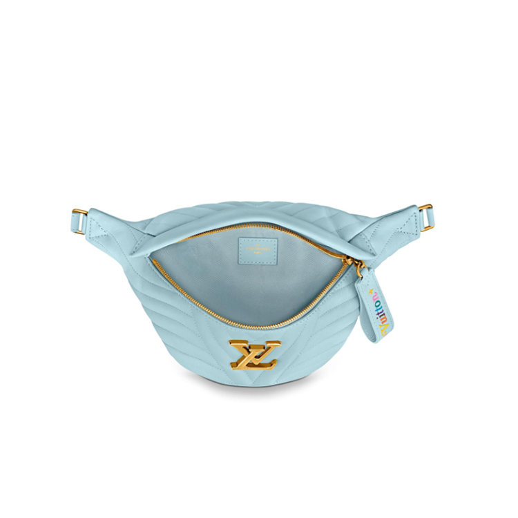 The New Wave Bumbag in quilted calf leather is a fashionable model in tune with city lifestyles. It features a vintage gold-color LV on the front, and a zip pull with a multicolored “Vuitton” signature. With its adjustable strap it can be styled as a belt bag – worn high or low – or carried cross-body.