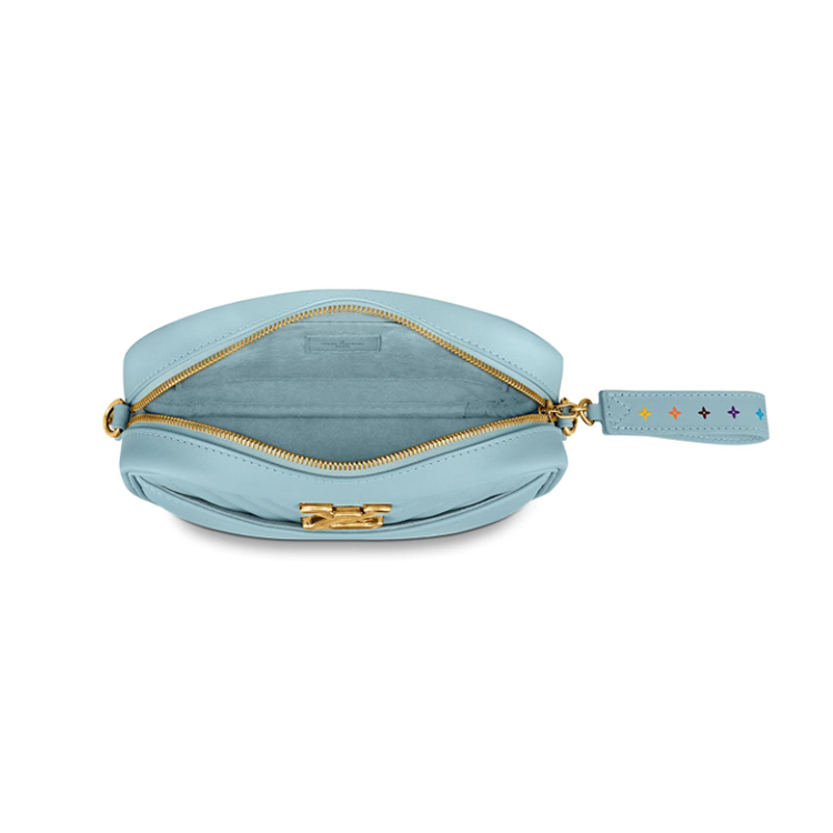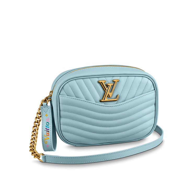 The New Wave Camera Bag in quilted calf leather is a modern, body-friendly model for every day. The distinctive shape is detailed with a vintage gold-tone LV and a comfortable leather-and-chain strap for shoulder or cross-body carry. The zip pull with its colorful “Vuitton” signature adds an on-trend touch.