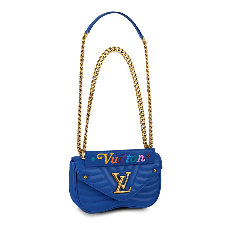 Presenting the Louis Vuitton New Wave Chain Bag PM, a statement piece destined to become a fashionable wardrobe staple. Made from smooth quilted calfskin, it features a removable handle with a colorful “Louis Vuitton” signature. An aged-gold finish adds richness to the bag’s hardware and sliding chain, which adapts to long- and short-shoulder or cross-body wear.