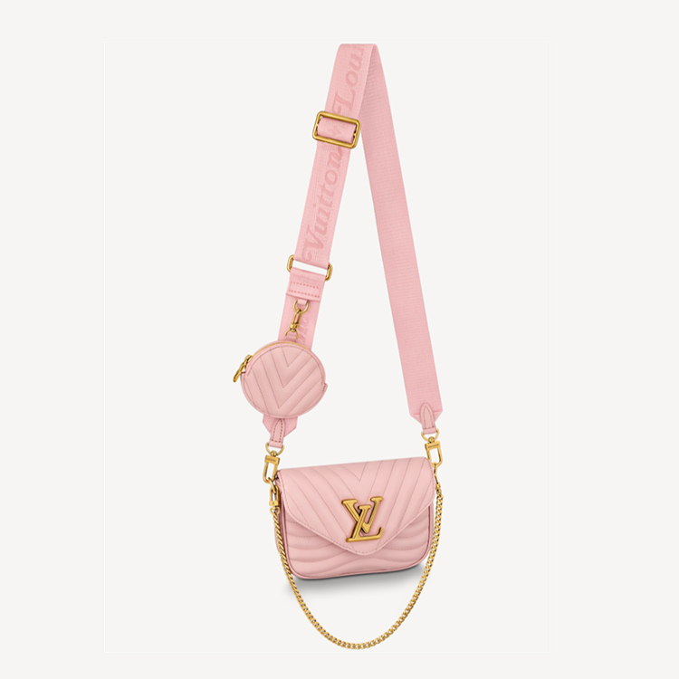 Louis Vuitton introduces the versatile New Wave Multi-Pochette crossbody handbag in quilted calf leather. With its wide strap, featuring an embroidered “Louis Vuitton” signature, gold-color chain for hand or short shoulder carry, and round coin purse clipped on the strap’s snap hook, all removable, it is the very definition of a versatile fashion accessory.