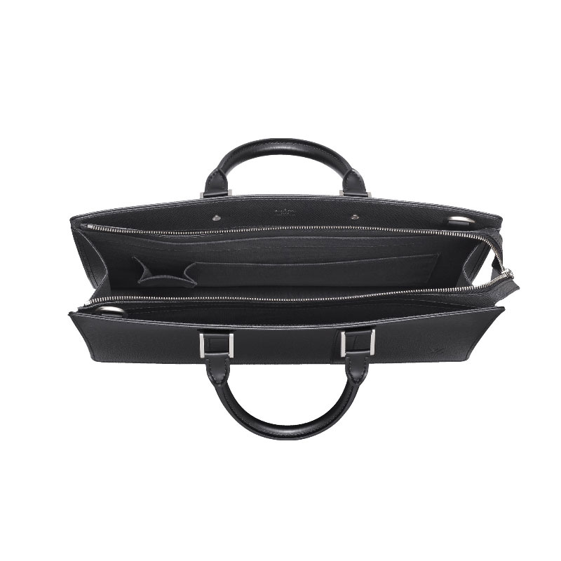 - Taiga leather discreetly stamped with the LV initials, rounded leather handles