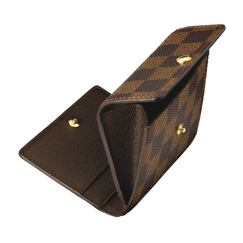 - Damier canvas, chocolate-colored cross-grain calf leather lining