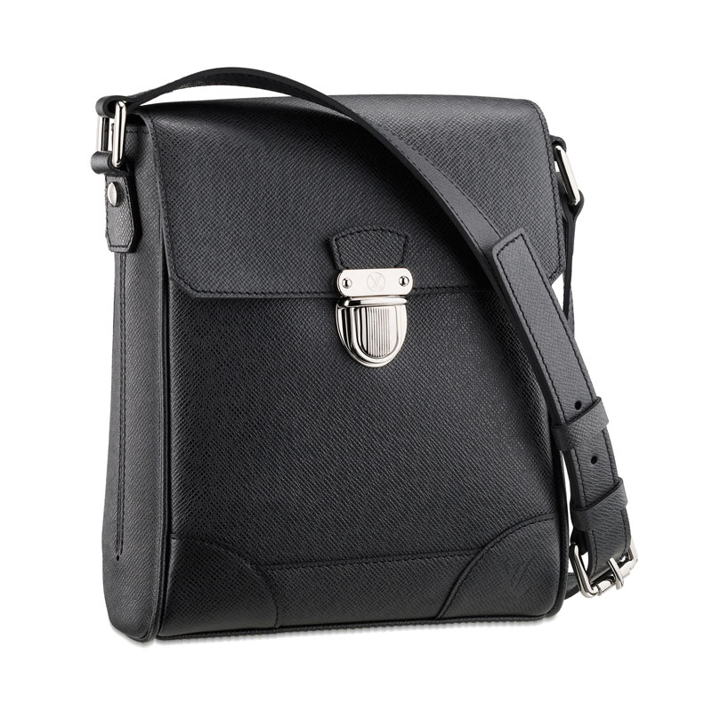 - Ta茂ga leather discretely bearing the LV initials, grained leather trimmings and textile lining