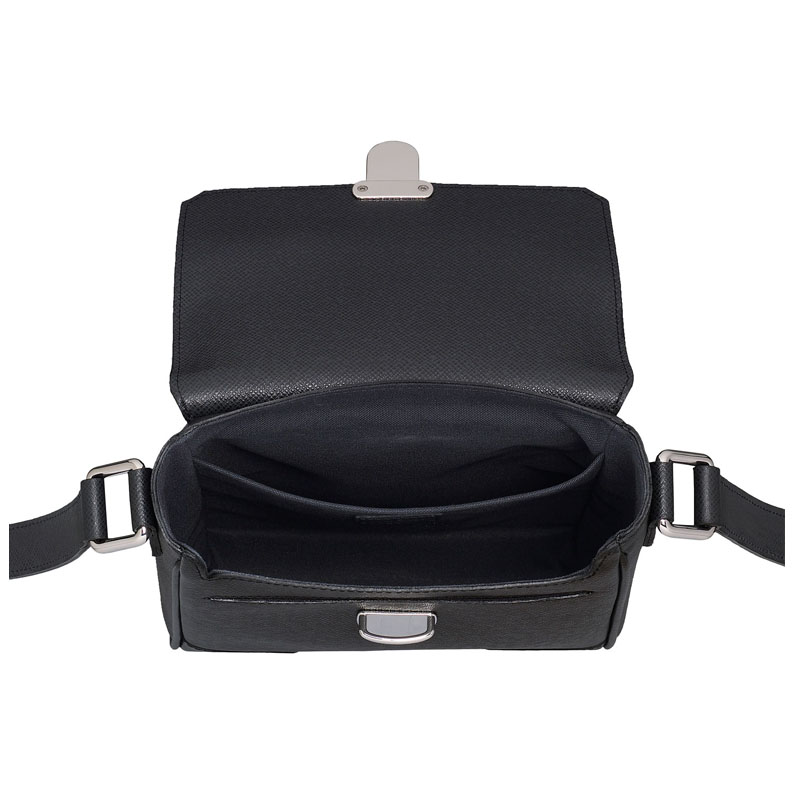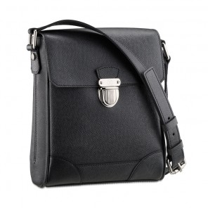 This city bag for men comes in Taiga leather and features an external zippered pocket and a press lock closure. It can be carried on the shoulder or across the body thanks to its adjustable strap.