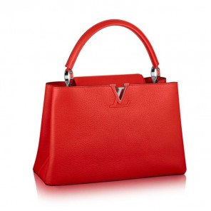 Taking its name from the rue des Capucines in Paris, where Louis Vuitton opened his first store in 1854, the timelessly elegant Capucines bag is a testament to fine leather craftsmanship. In full-grain Taurillon leather, it combines refined details, including a semi-rigid handle secured by jewel-like rings, with a spacious, functional shape offering two inside compartments. Its distinctive flap can be worn in two ways: outside to reveal the outline of a Monogram flower, or inside to show the LV initials.