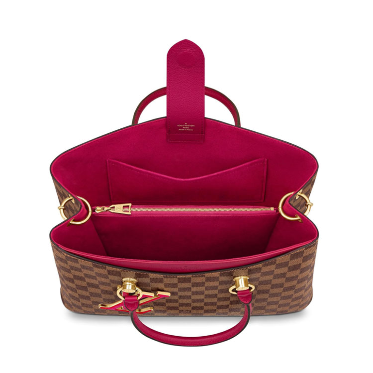 Combining practicality with elegance, the LV Riverside tote is an ideal work-to-weekend accessory. It is crafted from Damier Ebene canvas with intricate details constructed from grained Taurillon leather. The twin Toron handles feature gold-finished mounts, with an LV charm in Epi-textured resin adding a signature flourish.