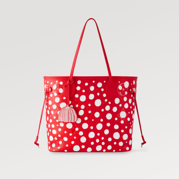 The new Louis Vuitton x Yayoi Kusama collection is a monument to art and fine craftsmanship. The renowned Japanese artist is known for her signature use of dots as a symbolic evocation of infinity. The LVxYK Neverfull MM features a galaxy of white dots on lustrous red Monogram Empreinte cowhide. An ultra-functional tote, it comes with a removable pouch and a pumpkin-shaped charm, a reference to another of Kusama鈥檚 emblems.