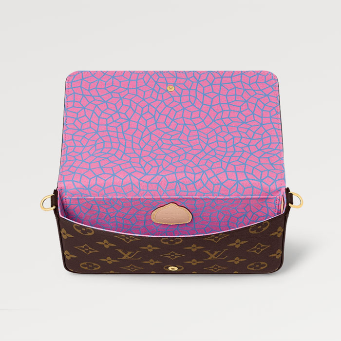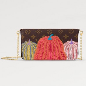 The LVxYK F茅licie Pochette is infused with creative charm as part of the exceptional new Louis Vuitton x Yayoi Kusama collection. The venerated Japanese artist has made pumpkins a thematic element in her paintings and sculptures, symbolizing warmth and optimism. This stylish, functional clutch features a trio of colorful pumpkins printed on Monogram canvas. And it comes with a removable card holder, ideal for contactless payment.