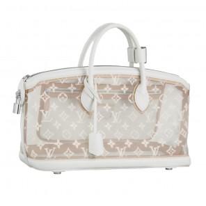 In exhilarating monogram transparence, the iconic lockit east-west is as captivating as ever.with intricate embroidery and sumptuous white calfskin leather trimmings,it's delightfully feminine