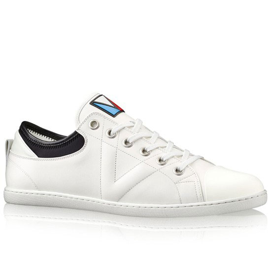 This sleek sneaker in plain calf leather and textile features a distinctive padded V detail on the side. This, and the V Gaston label, were inspired by the signature historically used by Gaston-Louis Vuitton to personalise his belongings.