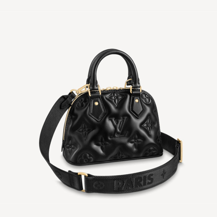 Made from quilted calfskin embroidered with the Monogram motif, the Alma BB handbag is the direct descendant of the Art Deco original from the 1930s. Crafted details like the two rolled-leather top handles complement the puffy leather. Equipped with a removable and adjustable strap, this small bag is perfect for cross-body wear in addition to hand carry.