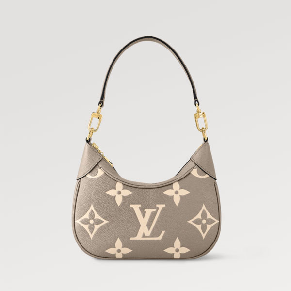 The Bagatelle mini hobo handbag is fashioned from supple, grained Monogram Empreinte leather. The embossed motif is oversized, the better to highlight the delicate color contrast of dove gray and cream. A graceful companion for any ensemble, it offers a host of stylish carry options thanks to the removable handle and detachable, adjustable strap.