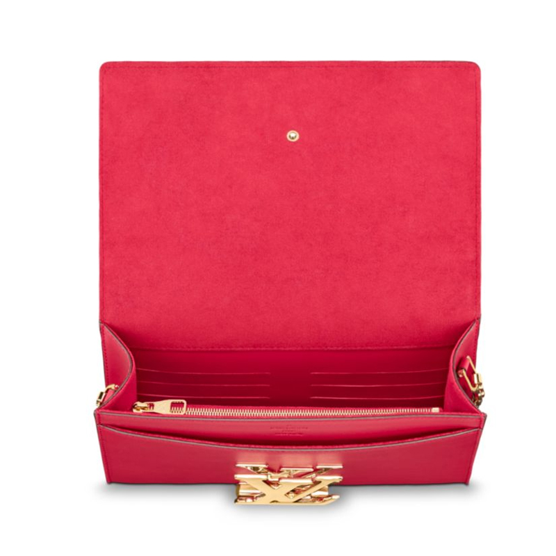- Golden brass metallic pieces including secure Louis Vuitton clasp opening