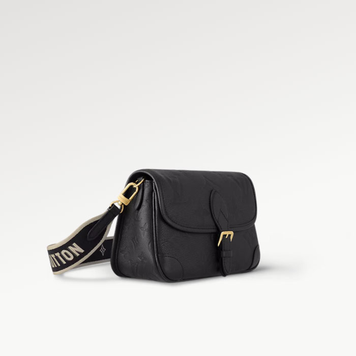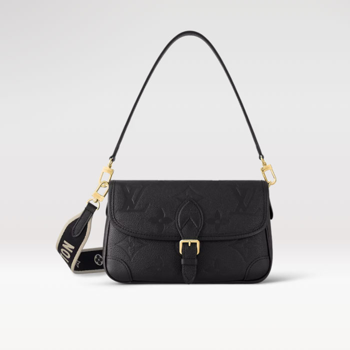 The Diane satchel is made from Monogram Empreinte, the Maison鈥檚 signature embossed leather. Fitted with a detachable leather strap for shoulder or hand carry, as well as a wide and removable jacquard cross-body strap with a woven "Louis Vuitton", this versatile bag can be styled in chic or sporty fashion, to match an ensemble or a mood.