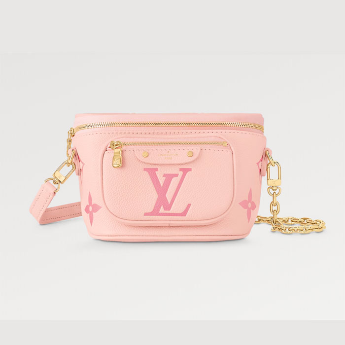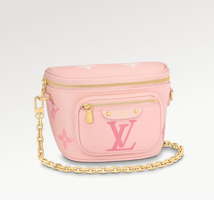 Part of the LV Gradient collection, the Mini Bumbag comes in Monogram Empreinte leather, whose embossed Monogram pattern is printed with a gradation of summery shades. This sophisticated interpretation of the on-trend bumbag format features a removable, adjustable strap for cross-body or shoulder carry, and a removable, gold-tone chain. The bag has a zipped main compartment and front pocket with a Louis Vuitton leather tag.