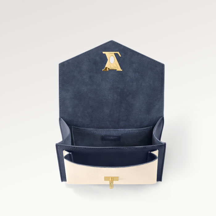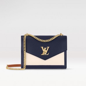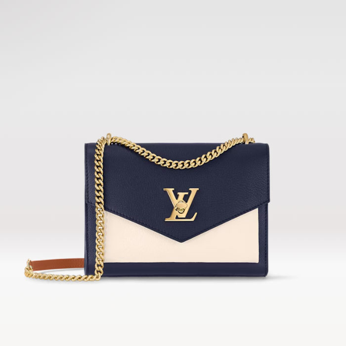 The MyLockMe Chain Bag is made from grained calf-leather in a striking two-tone colorway. With its sliding gold-color chain and gold-color LV Twist lock, this miniature 鈥渟choolbag鈥 brings elegance to any hour of the day or night. The long chain strap can be adjusted for short-shoulder carry or worn cross-body.