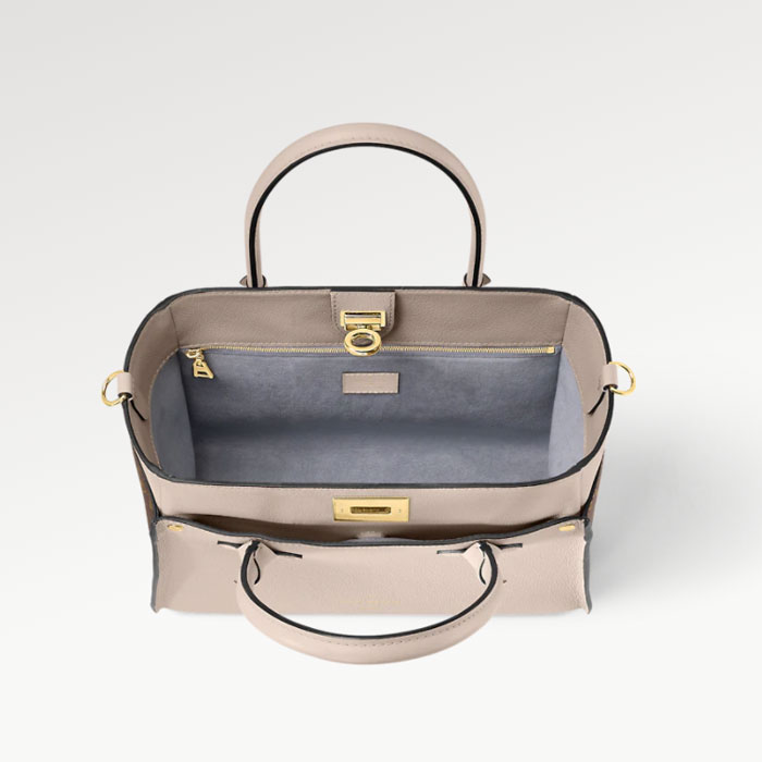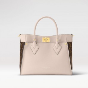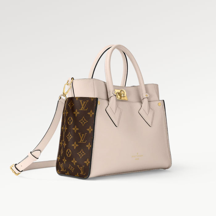 The On My Side MM tote bag is fashioned from an elegant combination of small-grained calf leather and emblematic Monogram canvas. The large outside pockets in contrasting canvas create a bag-in-a-bag look. The roomy interior can easily hold everything needed for a day at the office while the adjustable strap makes for practical cross-body carry.