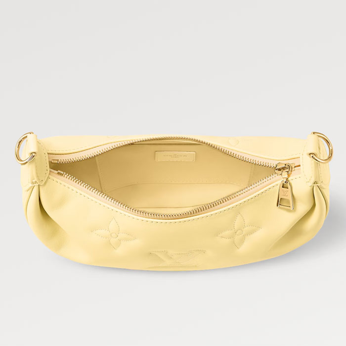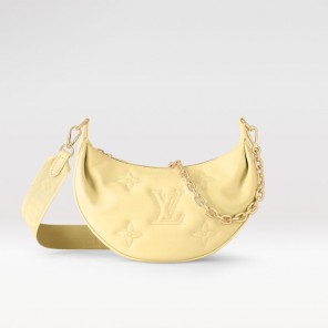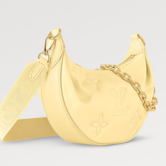 The Over The Moon delights with its versatile shape in quilted calf leather. The embroidered puffy Monogram pattern brings a statutory feel while the adjustable strap and gold-color chain deliver a myriad of carry options: elbow, short shoulder, cross-body, and long shoulder. With the strap removed, it can even be carried as an evening clutch.