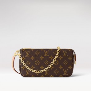 One of Louis Vuitton's emblematic styles, the Pochette Accessoires in Monogram canvas is ideal for carrying everyday essentials. This chic pouch offers different looks and carry options thanks to its removable strap in natural leather and removable gold-tone chain. Its secure zip closure opens to reveal a spacious compartment with zipped and flat pockets and two card slots.