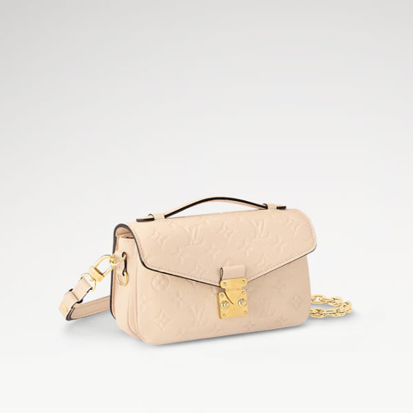 Made from embossed Monogram Empreinte leather, the Pochette M茅tis handbag blends signature House style and contemporary detailing. The on-trend East-West silhouette is highlighted by a heritage S-lock and removable short chain, both cast from gold-finish metal. With its well-organized interior and adjustable smart strap, this compact bag adapts perfectly to active lifestyles.