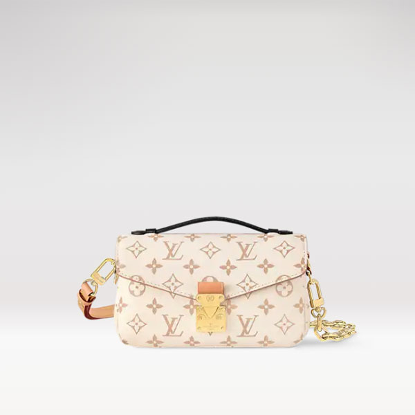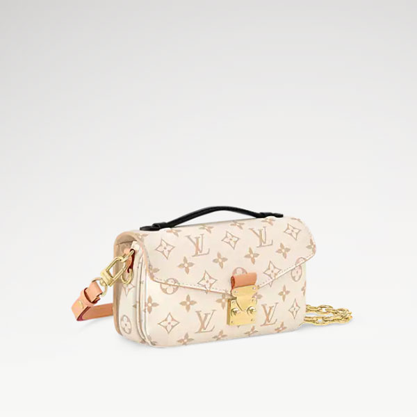 Fresh from Cruise 24, the versatile Pochette M茅tis East-West handbag showcases a new signature canvas: Monogram Dune. A soft yet strong colorway, the sand-inspired shade brings an air of effortless chic to any ensemble. This east-west model can be styled in a variety of ways, thanks to a leather top handle, detachable chain, and removable leather strap.