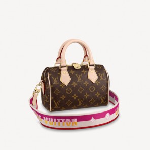 Like a diminutive version of the House’s historic Speedy travel bag, the Speedy Bandoulière 20 handbag is crafted from Monogram canvas with natural cowhide trim. In addition to the rolled leather top handles, there’s a wide detachable textile strap with a woven Louis Vuitton signature. This bag’s classic design is completed with red textile lining.
