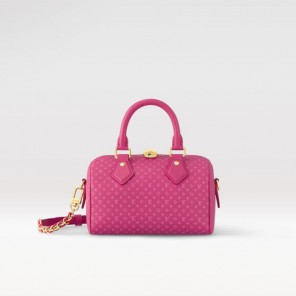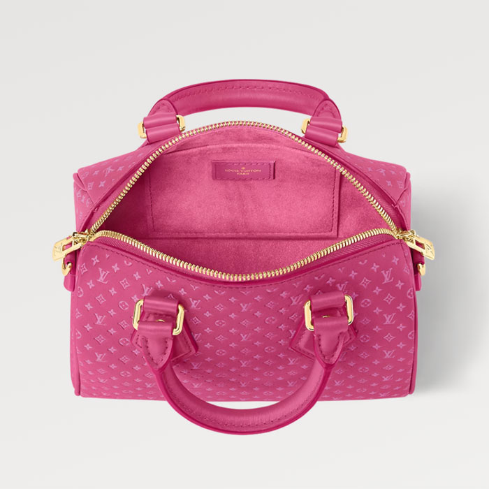 Fashioned from calfskin with a very small Monogram motif embossed then printed on the leather, this Speedy 20 handbag is part of the Nanogram capsule. Its inimitable silhouette, and engraved padlock, make this bag instantly recognizable. A removable and adjustable braided-chain-and-leather strap enables shoulder or cross-body carry.