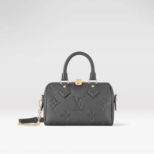 The LV Ski collection introduces this ‘Shimmery’ edition of the classic Speedy Bandoulière 20 design, ready to shine bright off-piste. Made from signature Monogram Empreinte leather, it is sized to fit evening essentials and fastens with a double-zip closure embellished with an iconic LV padlock. Carry it by hand or wear it cross-body.