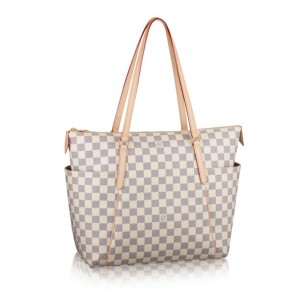 The ultimate city tote in Damier Azur canvas with pockets galore. Magazines, tickets, sunglasses are all easily within grasp, while the bag itself is a comfortable fit for any shoulder.