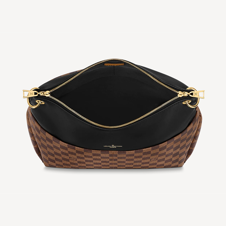 For Fall 2020, Louis Vuitton brings together Damier Eb猫ne canvas with Khaki Green calfskin leather in the generous Maida handbag. The bag鈥檚 unexpectedly elegant combination of materials is complemented by an oversized LV charm in off-white and the black of the leather top handle and removable strap. This is a very functional and body-friendly tote.