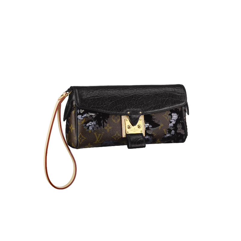 Add a touch of glamour to any day or evening ensemble with the Manege in Monogram Fleur de Jais. Shimmering sequins, floral details and refined calfskin leather make it a truly elegant clutch.