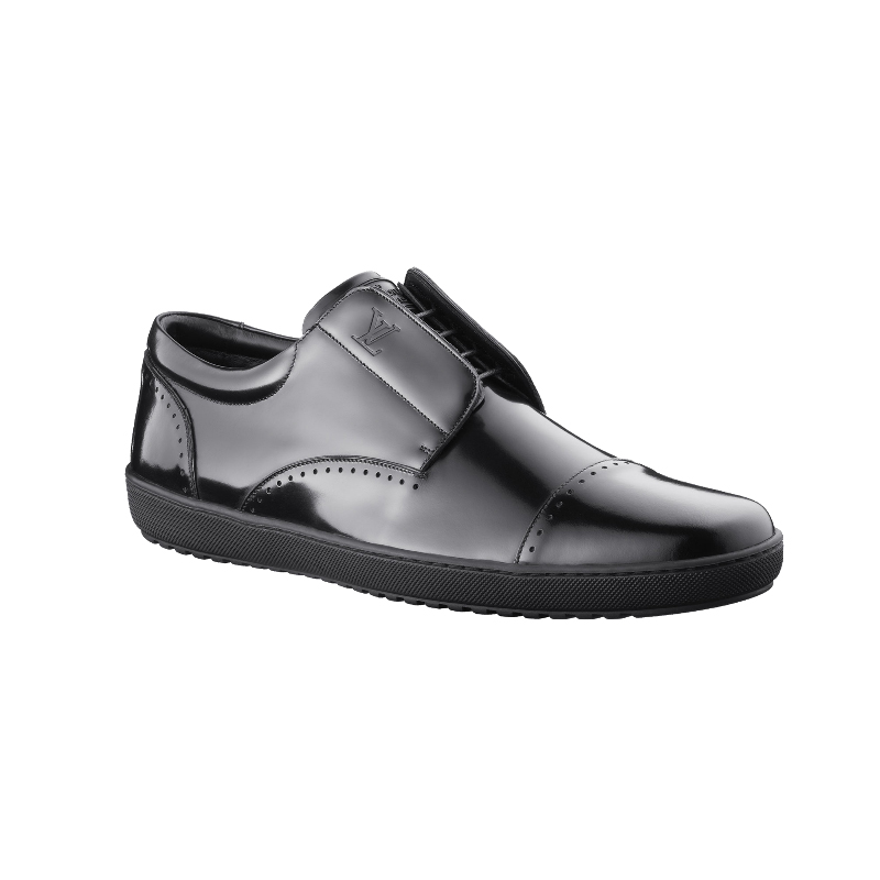 Louis Vuitton reinvents sneakers in a chic, urban spirit with this stylish derby combining glazed calf leather with a rounded last and thick rubber outsole.