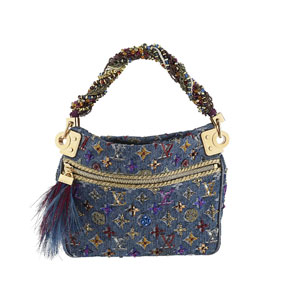 This limited edition pouch in vintage Monogram Denim Bijou canvas has been hand embroidered by the famous Maison Lesage. Its bead and chain handle is particularly couture.