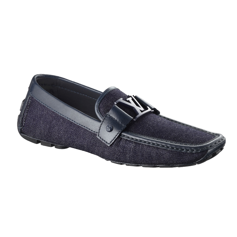 Louis Vuitton's iconic initials moccasin is given a trendy twist in denim. It features a hand-stitched upper and a supple padded rubber sole.