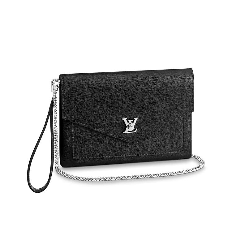 The Pochette Mylockme in supple calf leather is a modern pouch ideal for carrying essentials. Its removable wristlet and chain enable it to be carried in the hand, on the shoulder or across the body. Its envelope-style design and silver-tone LV Initials clasp are signatures of the Mylockme line.