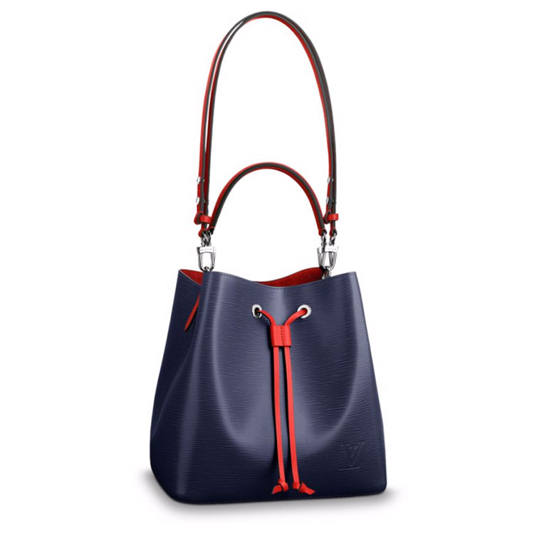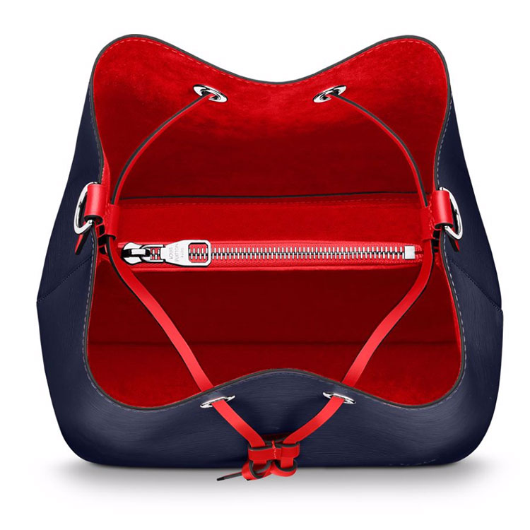 The Noe can trace its roots back to 1932 – when a champagne producer asked Gaston-Louis Vuitton to create an elegant and solid bag to carry 5 bottles of champagne. Reshaped and crafted in emblematic Epi leather with a colorful bonded lining, this NeoNoe is today’s answer to yesterday’s longings.