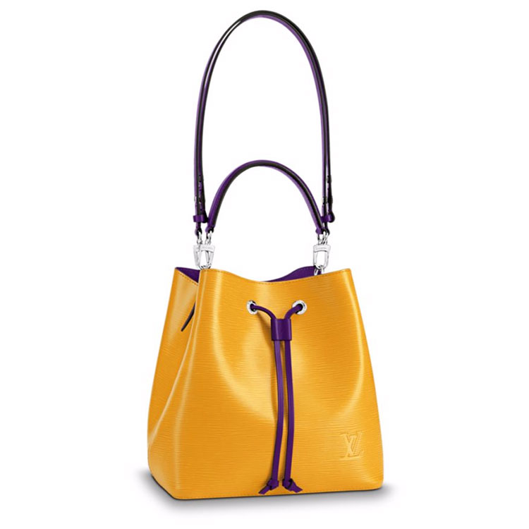 The Noe can trace its roots back to 1932 – when a champagne producer asked Gaston-Louis Vuitton to create an elegant and solid bag to carry 5 bottles of champagne. Reshaped and crafted in emblematic Epi leather with a colorful bonded lining, this NeoNoe is today’s answer to yesterday’s longings.